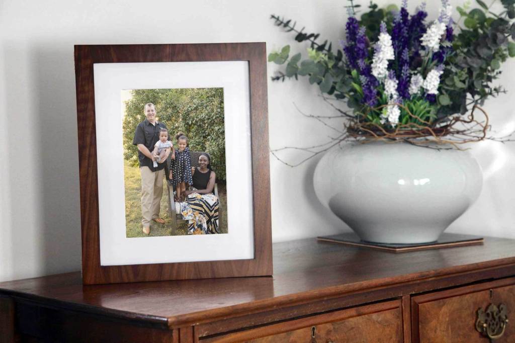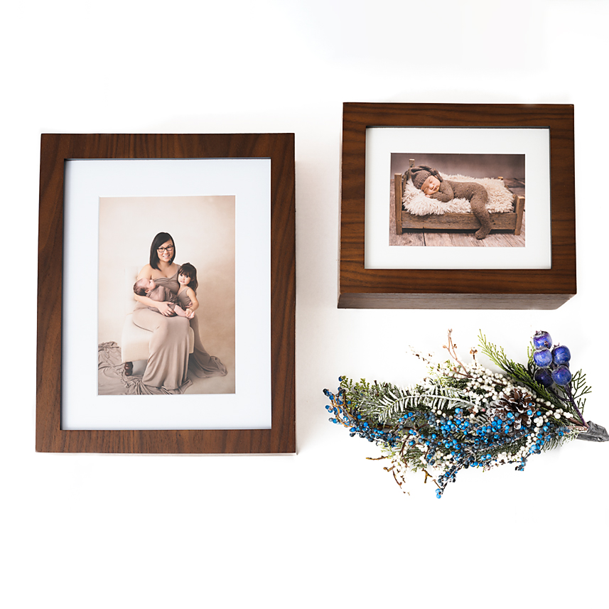 You heft your American Walnut story box out of its packaging. Your favorite image greets you, and you lift the hinged lid to reveal 20 of your prized session images snug inside the museum archival mats.